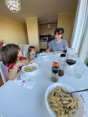 și apoi ne-am întors la căsuța noastră fixă, cu trei camere și două băi. Una cu cadă. Am mâncat paste și seara am ieșit la plimbare în Fisterra.