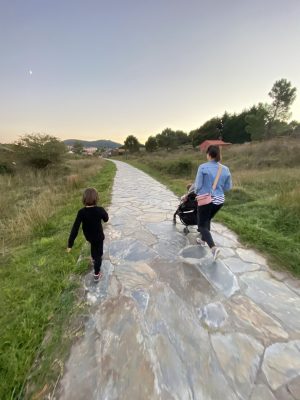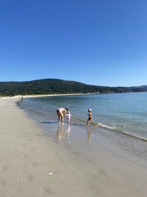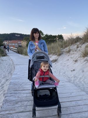 14 octombrie, joi. La 12.30 ieșim la plimbare și mergem de-a lungul plajei Langosteira. E înnorat un pic. Ilinca adoarme pe umărul meu și pășesc ușor, cu grijă să nu o trezesc. Seara mai ieșim odată la plimbare.