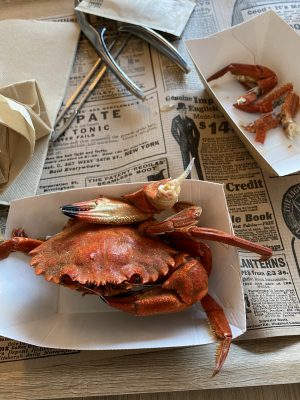 Seara mergem iarăși la plimbare în Fisterra. Mănânc un crab minuscul și adaug la ospăț o bere. Una peste alta Fisterra este cel mai urât orășel/sătuc pe care l-am văzut până acum! Am subit o senzație puternică că este așa. E o aglomerare de clădiri de diverse stiluri, câteva neterminate sau în ruină, vechi sau completate prost cu termopane, mizerie, o plajă mică și murdară, Praia da Ribeira, un castel mucegăit și părăsit, Castelo de San Carlos, un sentiment dezagreabil în întregul lui. Poate așa trebuie să te simți la capătul lumii. Poate a fost doar senzația dată de crabul ăla mic, mort și rece. Portul este un pic mai colorat și parcă mai viu.