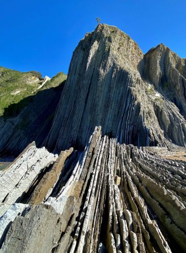 7 octombrie, joi. Astăzi plecăm iar către ocean, la Zumaia. Citiserăm că aici există niște formațiuni geologice foarte rare create în milioane de ani, numite flysch. Ciudate, alungite nefiresc, nepământene parcă. Așa că prinși de curiozitate hai și noi să vedem despre ce este vorba. Mai ales că aici se află și plaja Itzurun care este un obiectiv turistic major pe coasta bască.