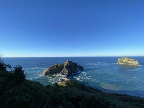 8 octombrie, vineri. Când plecăm din Guernica spre ocean este aproape cinci p.m. Avem de mers doar puțin peste o jumătate de oră. Peisajul este fabulos, mergem de-a lungul coastei către San Juan de Gaztelugatxe. Aici s-au filmat scene pentru serialul Urzeala Tronurilor (Game of Thrones) urmărit de o grămadă de lume și Dragonstone este un castel creat digital pe vârful acestei insule. După acest film numărul vizitatorilor a crescut foarte mult.