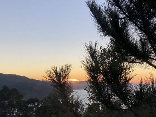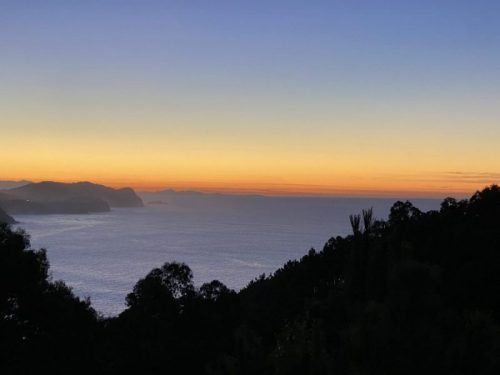 Avem un noroc chior pentru că găsim un loc liber chiar în parcarea din deal, luată de pe park4night, cu referințe bune dar foarte mică și plină de mașini ale turiștilor. Suntem cu fața către ocean și avem o perspectivă extraordinară. Nu vedem către schit dar cu toate astea așa cum soarele se pregătește să cadă peste ape și lumina roșiatică care se răsfrânge în căsuța noastră, îmi dă o senzație de împlinire și bucurie deosebită.