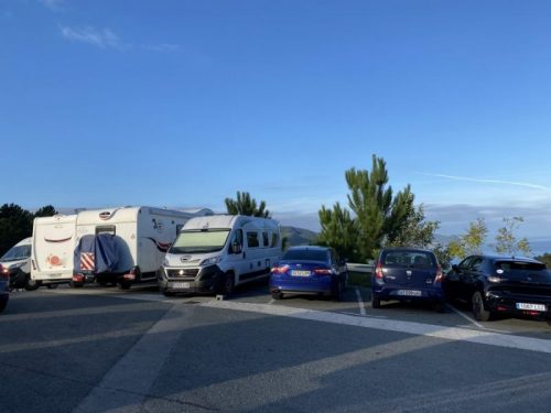Sunt două restaurante în apropiere și mai jos puțin este o parcare mult mai mare dar care are la intrare un indicator de interdicție pentru autorulote. Parcarea este goală și mă gândesc că se aplică probabil în sezon. Suntem aproape de drum însă noaptea este liniștită și dormim foarte bine. Nu sunt zgomote exagerate. Rar mai trece câte o mașină.