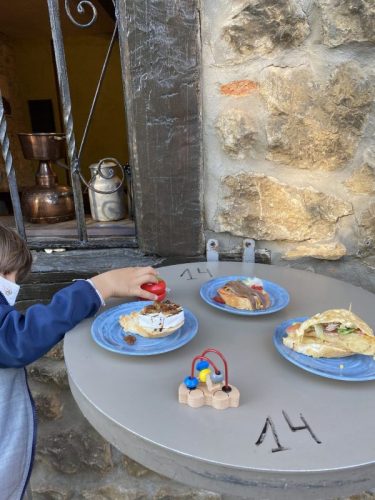Am bătut străduțele la picior cât de mult am putut, asta pentru că sunt din piatră și am manevrat foarte greu căruciorul Ilincăi. Obosiți, gustăm apoi la o terasă niște pintxos, asemănătoare cu tapas-urile din restul Spaniei.